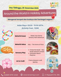 TERAS MAYN hadir sebagai sarana belajar sambil bermain yang dapat membantu stimulasi motorik halus dan kasar, sensorik, bahasa dan bicara, serta sosio-emosional anak menggunakan dalam rancangan belajar dan tentunya direalisasikan dengan pendekatan oleh tenaga berpengalaman sesuai dengan usia anak.